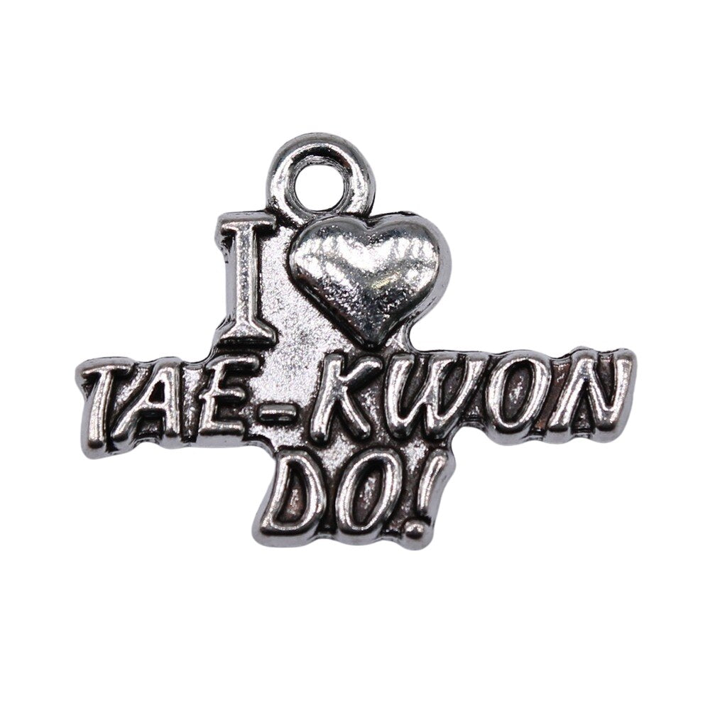 WYSIWYG 20pcs 22x17mm Charms I Love Tae-Kwon-Do Charms For Jewelry Making DIY Antique Silver Color Alloy Charms