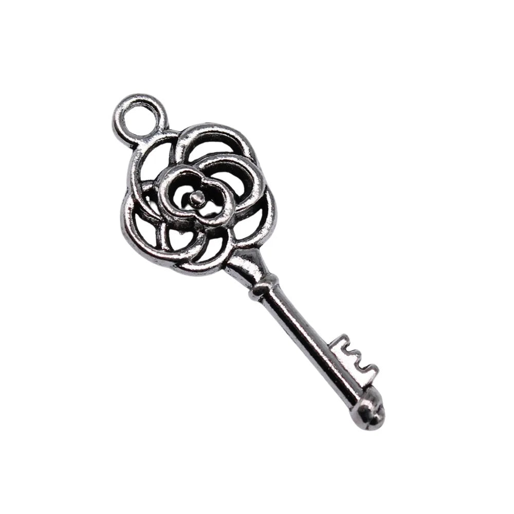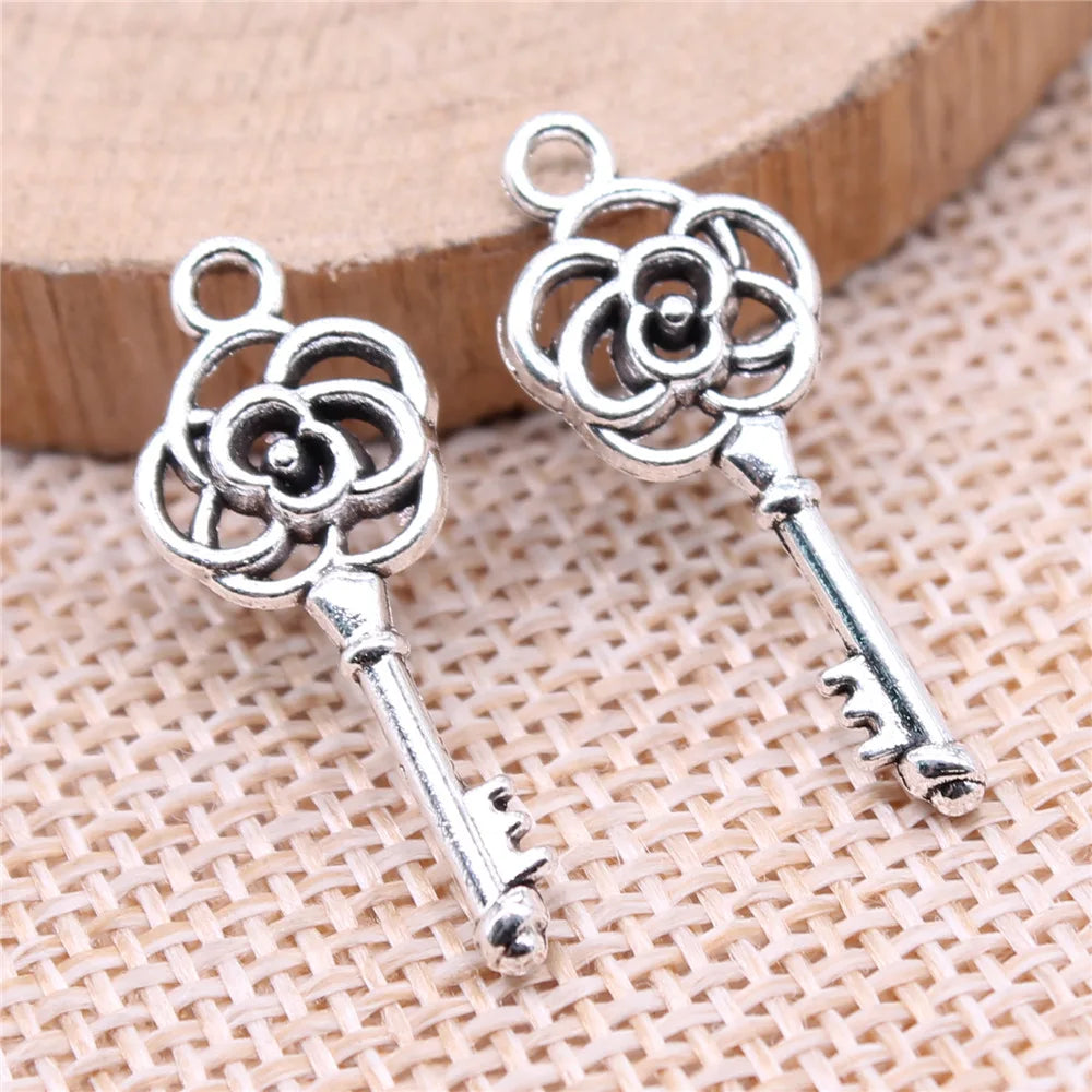 20pcs 28x11mm Antique Silver Color Flower Key Charms Pendant For DIY Jewelry Making Handmade Jewelry Craft Findings