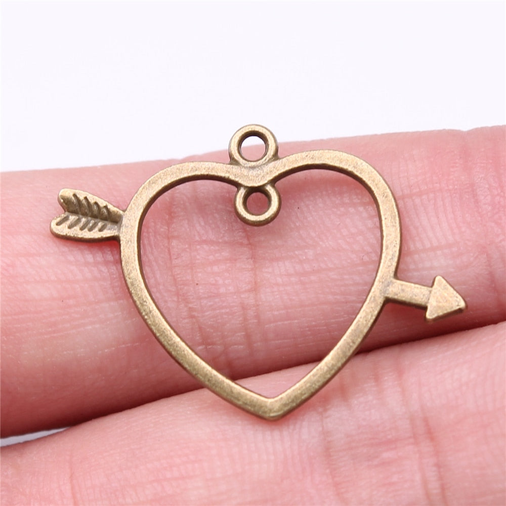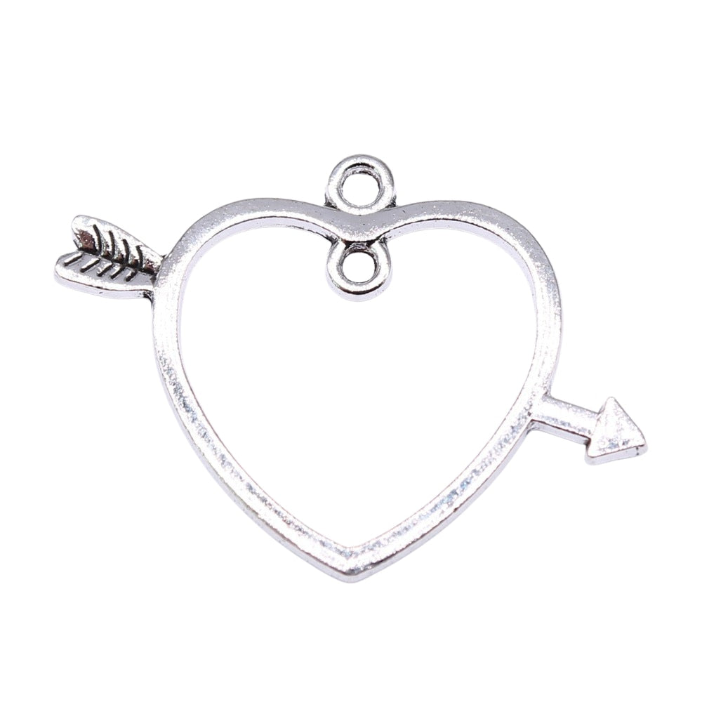 WYSIWYG 20pcs 33x24mm One Arrow Through The Heart Connector Charms Jewelry Making Antique Silver Plated Antique Bronze Color