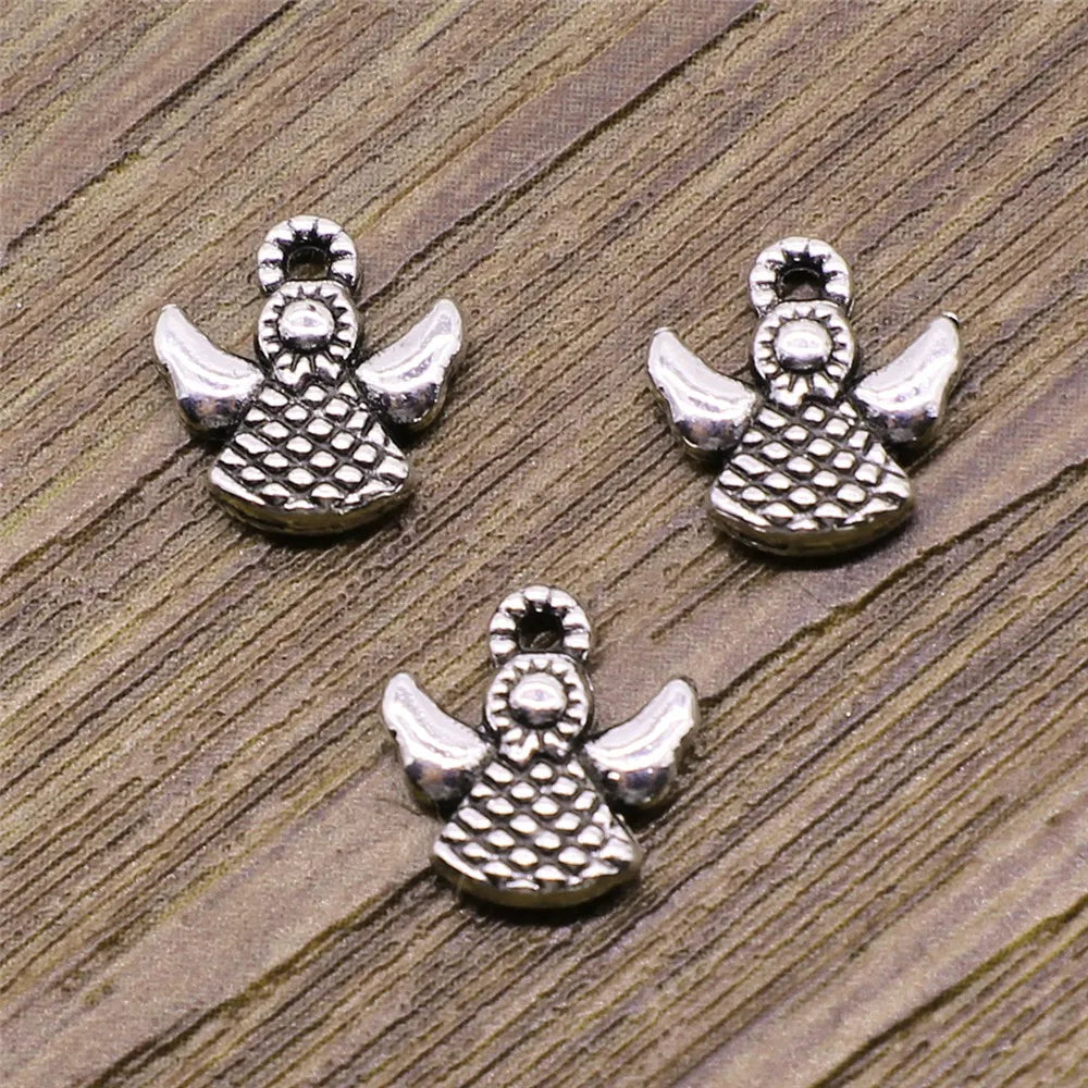 20pcs Angel Charms Pendant DIY Jewelry Findings Antique Silver Color Tone 10x10mm