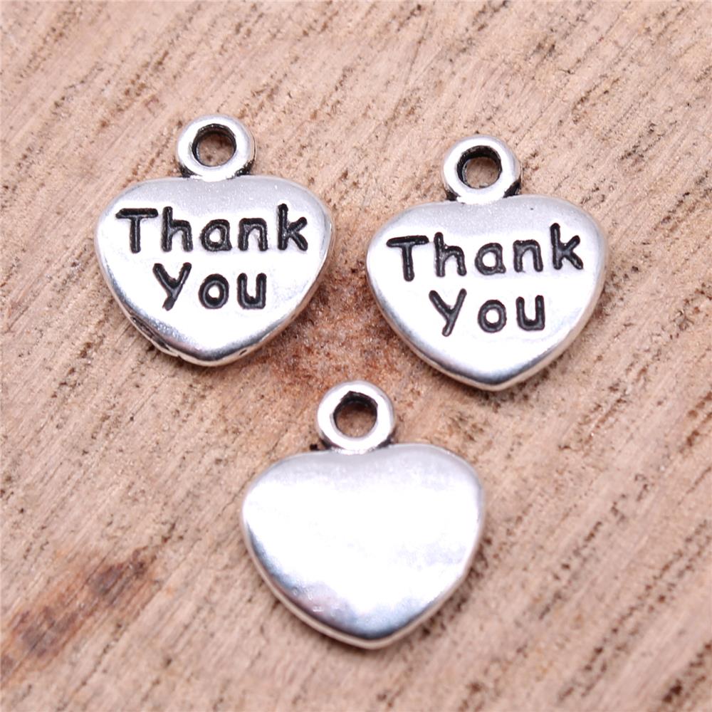 WYSIWYG 20pcs Charms 13x11mm Thank You Heart Charms For Jewelry Making DIY Jewelry Findings Antique Silver Color Alloy Charms