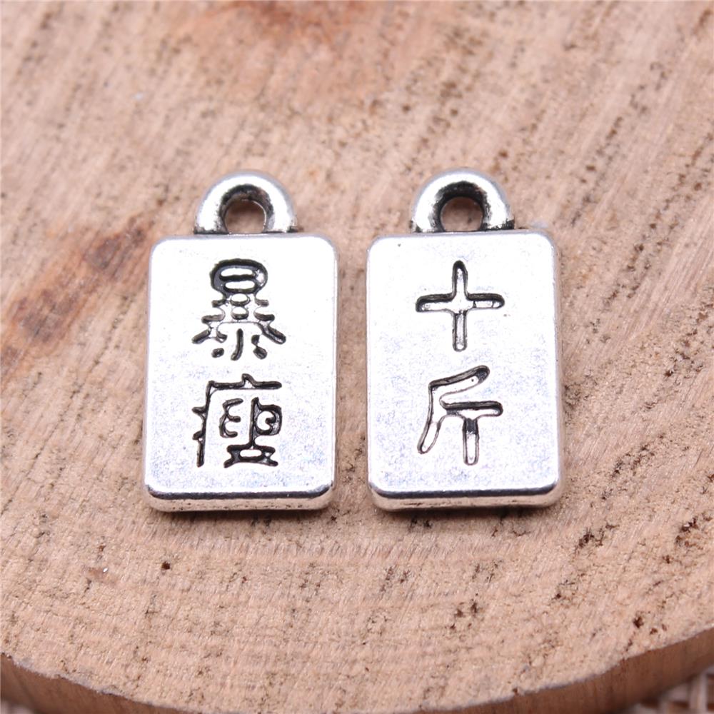 WYSIWYG 20pcs Charms 15x8mm Chinese Style Thin Charms For Jewelry Making DIY Jewelry Findings Antique Silver Color Alloy Charms