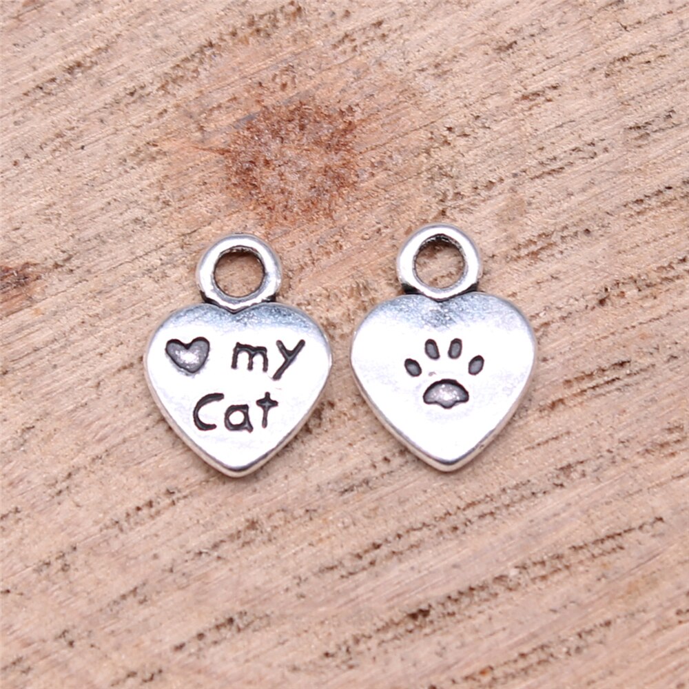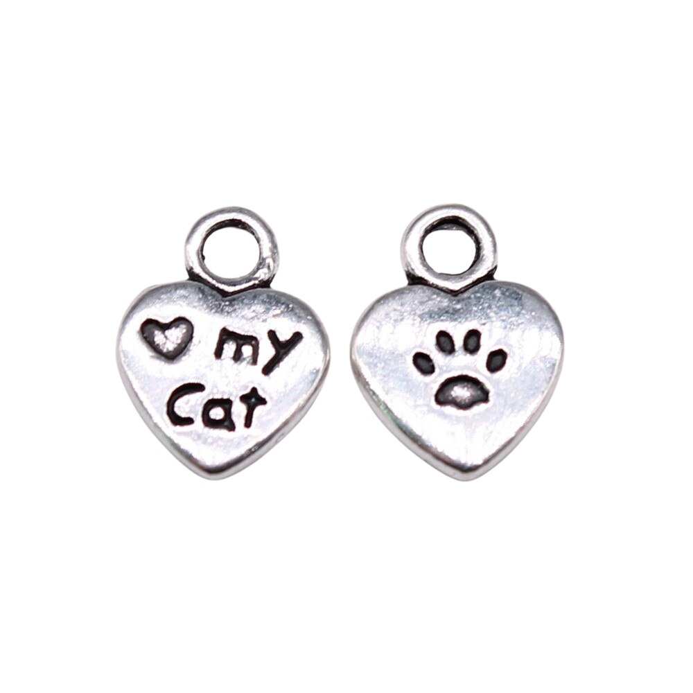 WYSIWYG 20pcs/lot Love My Cat Paw Print Charms For Jewelry Making 8x12mm Antique Bronze Plated Accessories