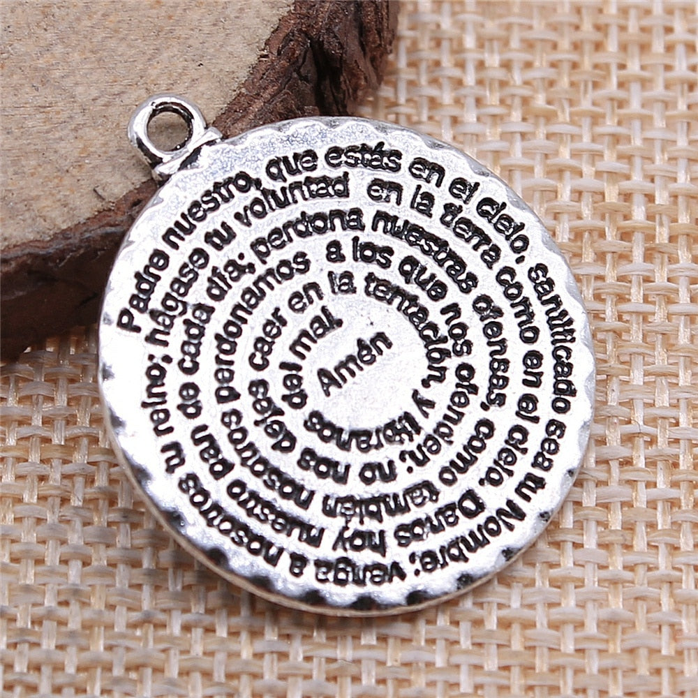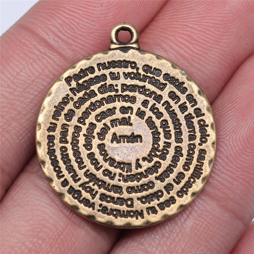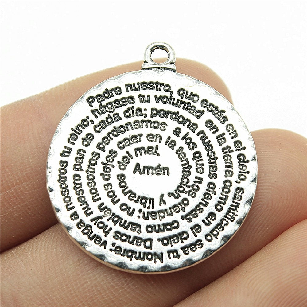 WYSIWYG 2pcs 32x28mm Pendant Bible Double Sided Round Amen Bible Charm Pendants For Jewelry Making Bible Amen Pendants