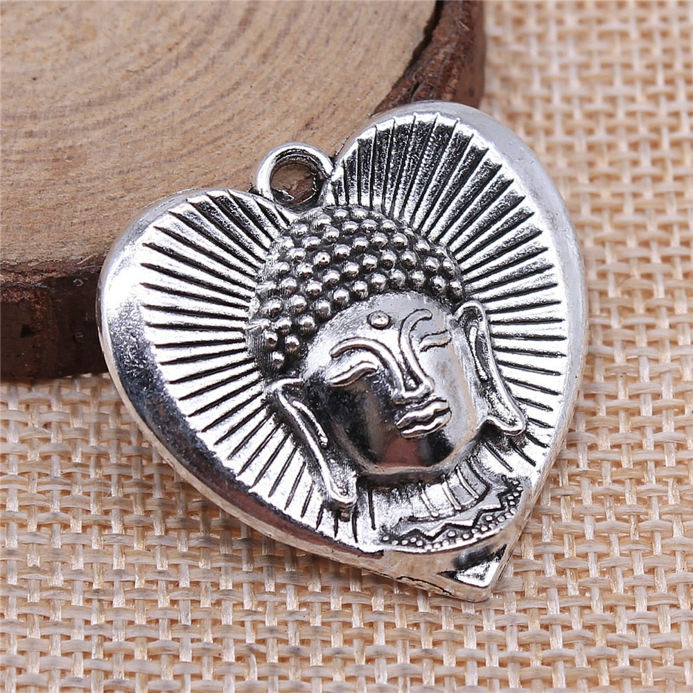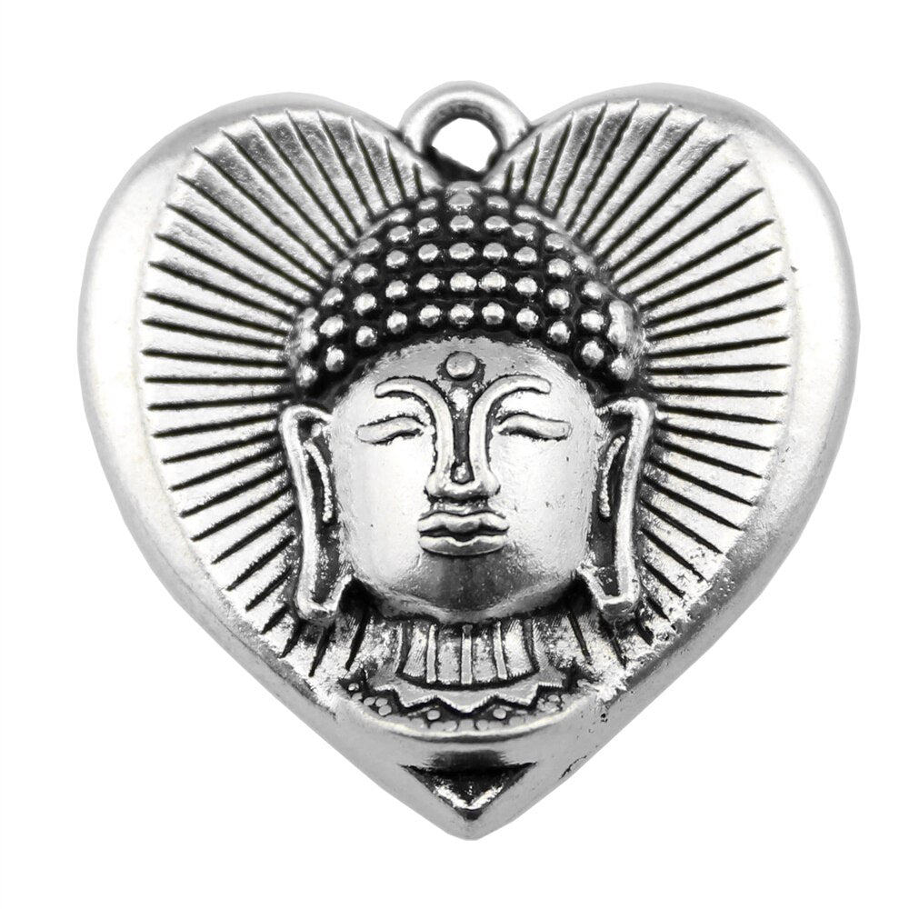 WYSIWYG 2pcs 32x32mm Buddha Charm Heart Pendants Buddha Pendants Charm Buddha In Heart Pendants For Jewelry Making