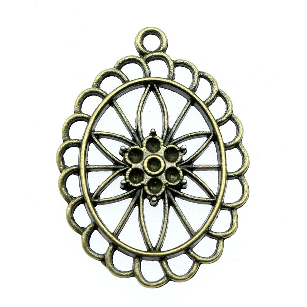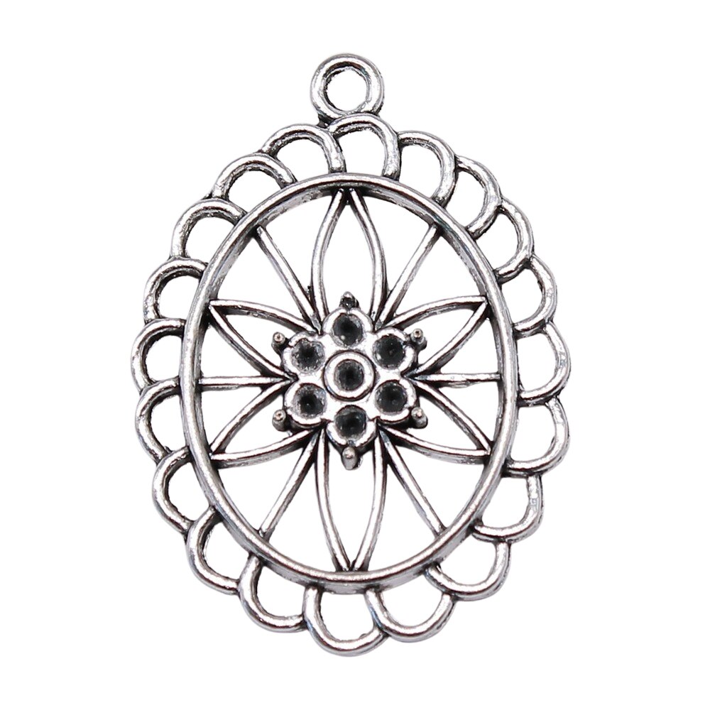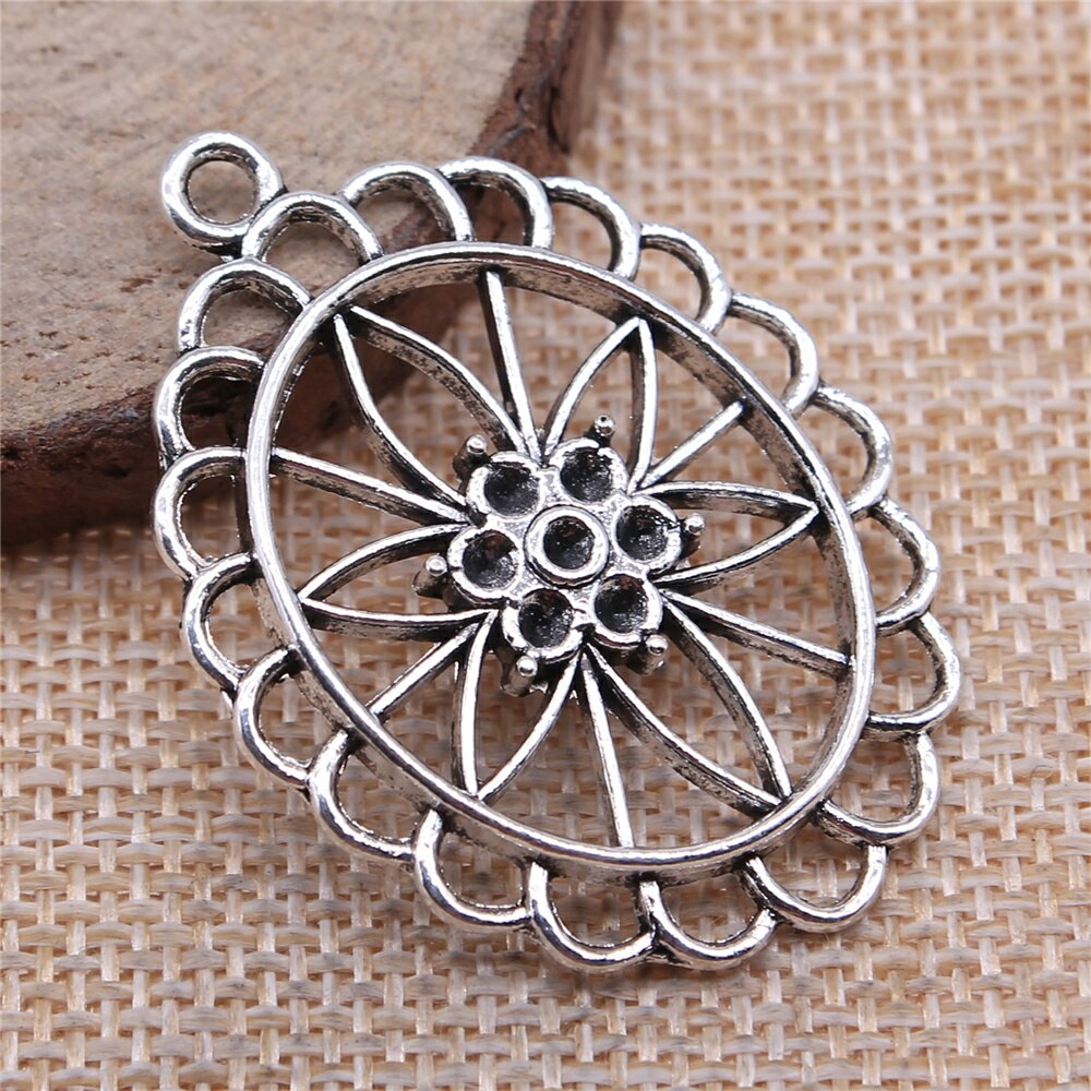 WYSIWYG 2pcs 44x31mm Oval Hollow Flowers Charm Pendants Flower Charm Oval Plated Hollow Oval Flower Pendants Charm