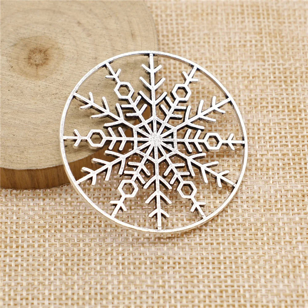 2pcs 47x47mm Antique Silver Color Hollow Round Snowflakes Charms Pendant For DIY Jewelry Making Jewelry Craft Findings