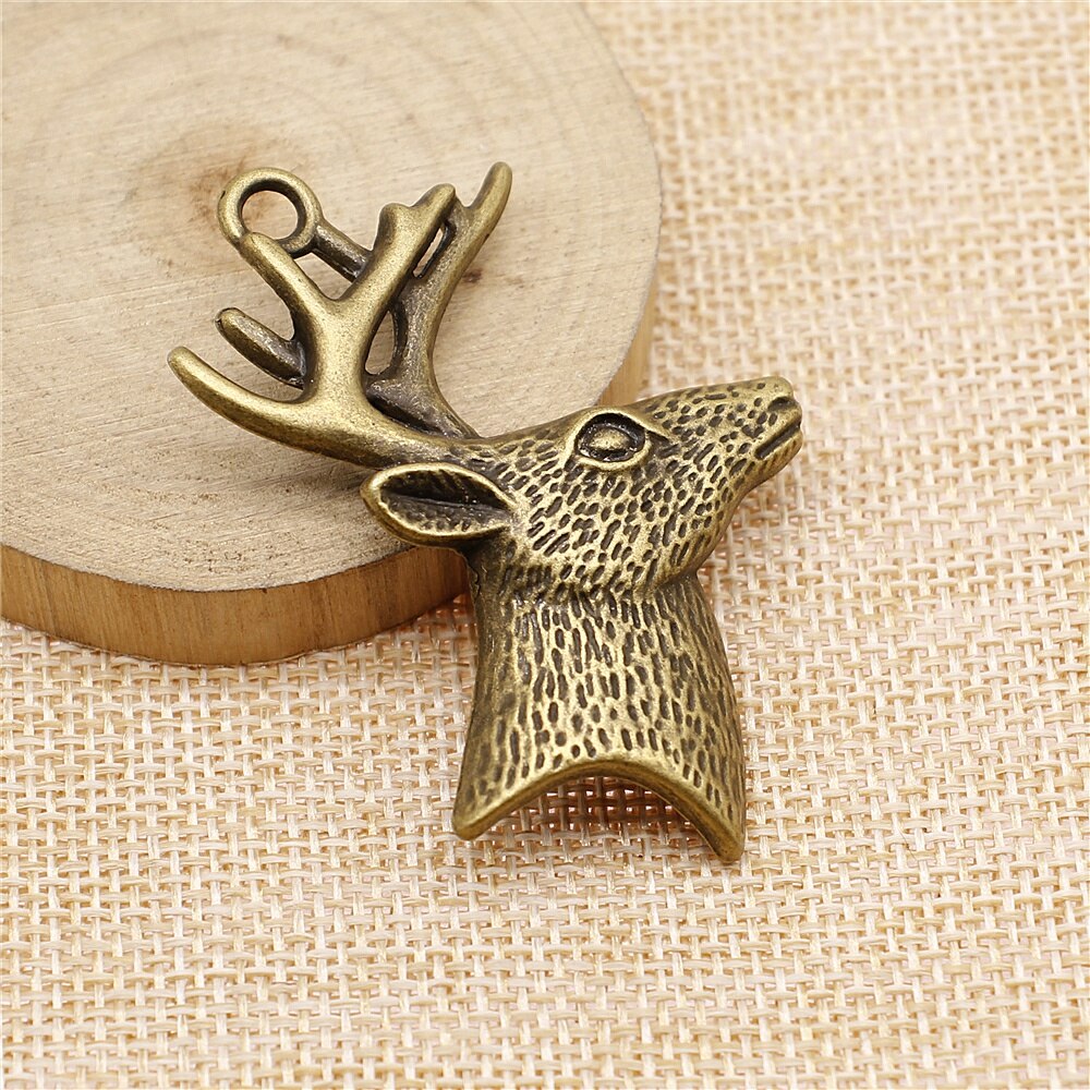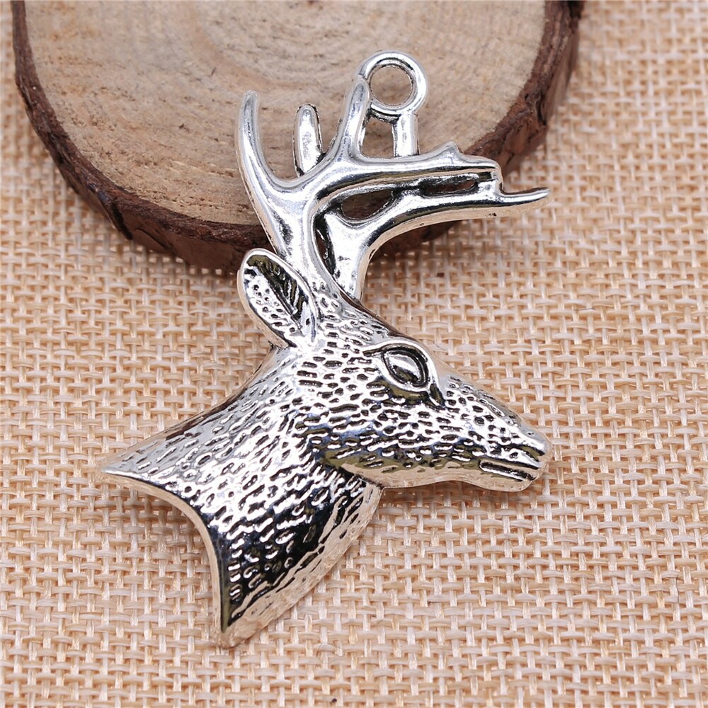 WYSIWYG 2pcs 60x43mm Pendant Deer Head Reindeer Charm Pendants For Jewelry Making Deer Head With Antlers Pendants