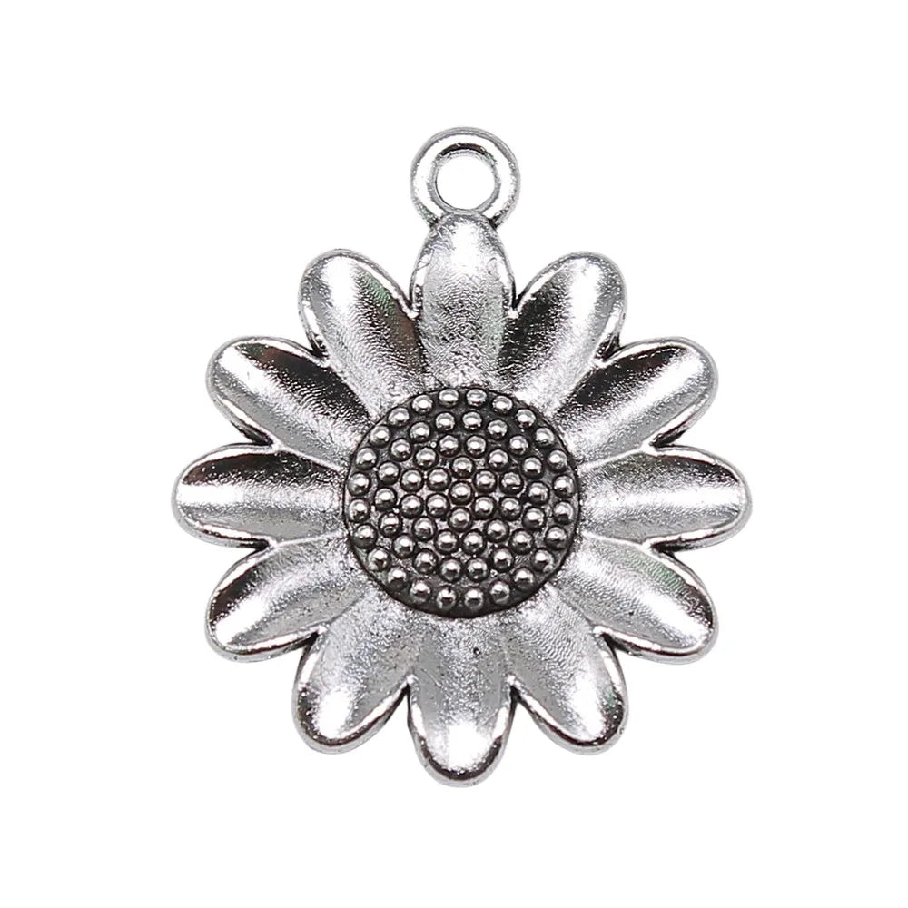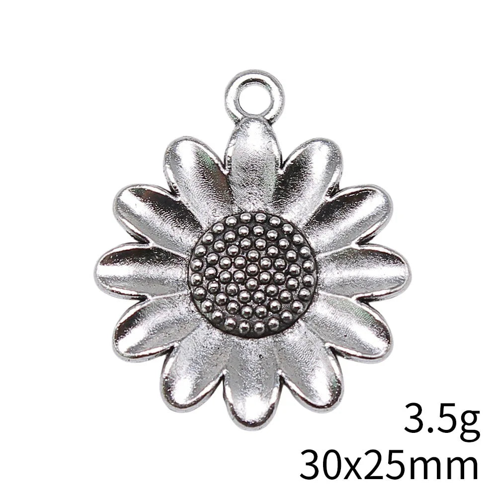 3pcs 30x25mm Antique Silver Color Sunflower Flower Charms Pendant For DIY Jewelry Making Jewelry Craft Findings