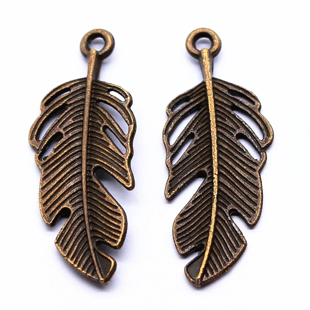 5pcs 40x16mm 2 Colors Feather Charms Pendant For DIY Jewelry Making Handmade Jewelry Craft Findings