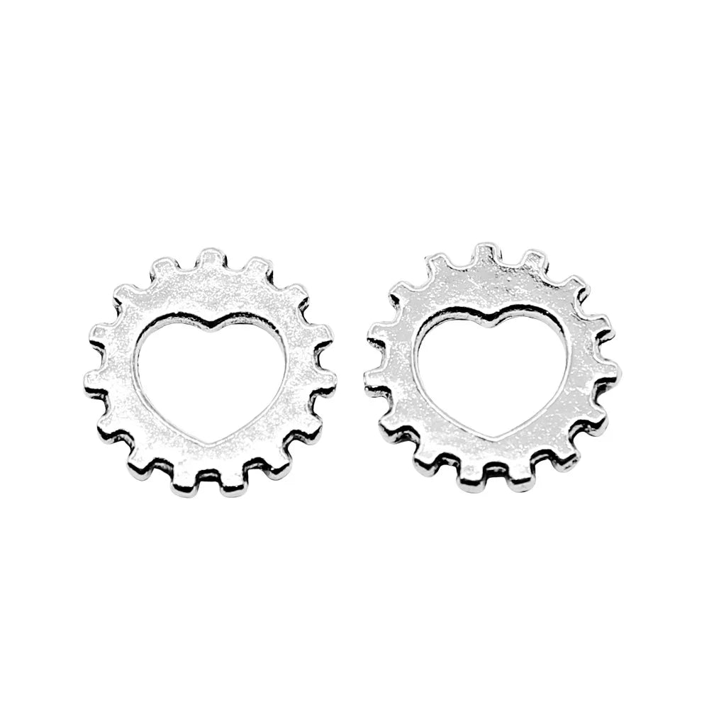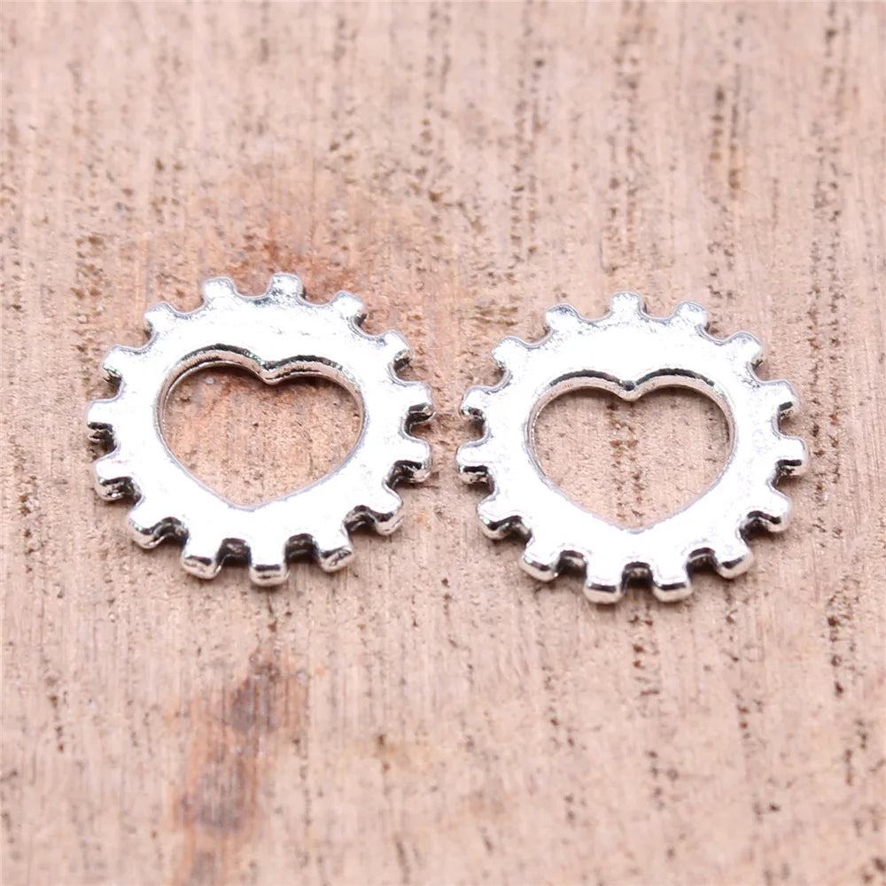 40pcs 12x12mm Antique Silver Color Gear Heart Charms Pendant For DIY Jewelry Making Handmade Jewelry Craft Findings