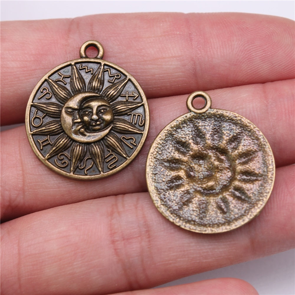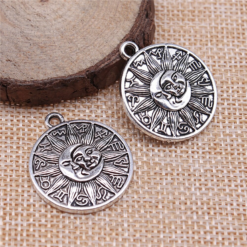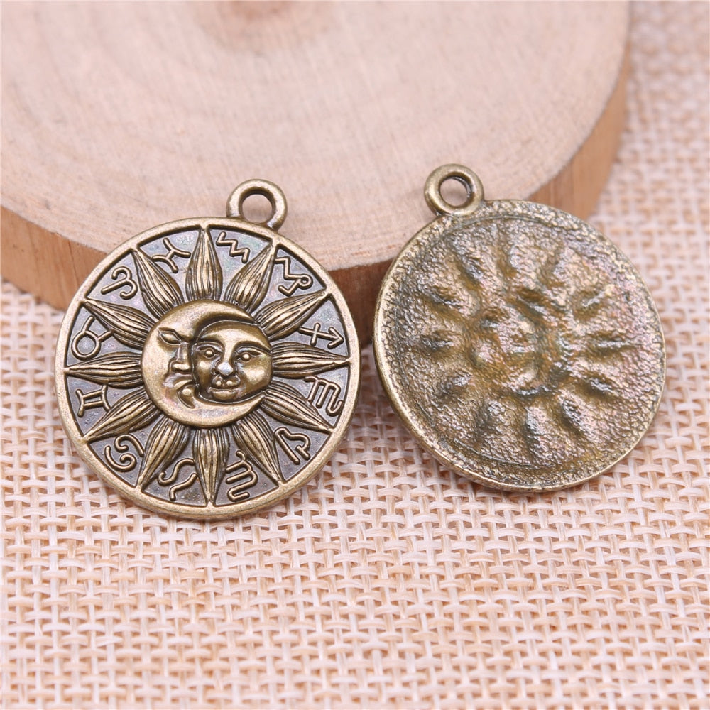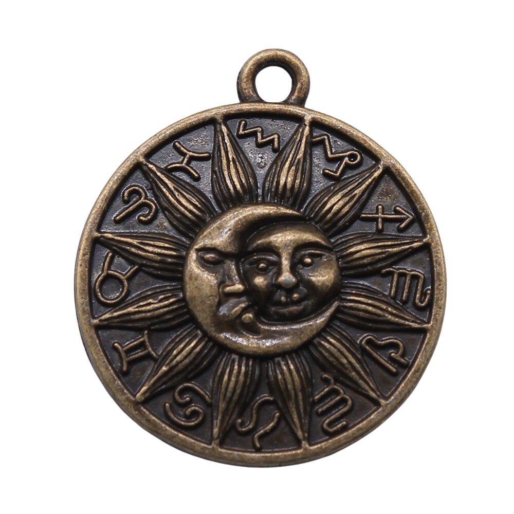 WYSIWYG 4pcs 28x25mm Round Shape Retro Zodiac Symbol Sun And Moon Totem Charm Pendant For Necklace Making