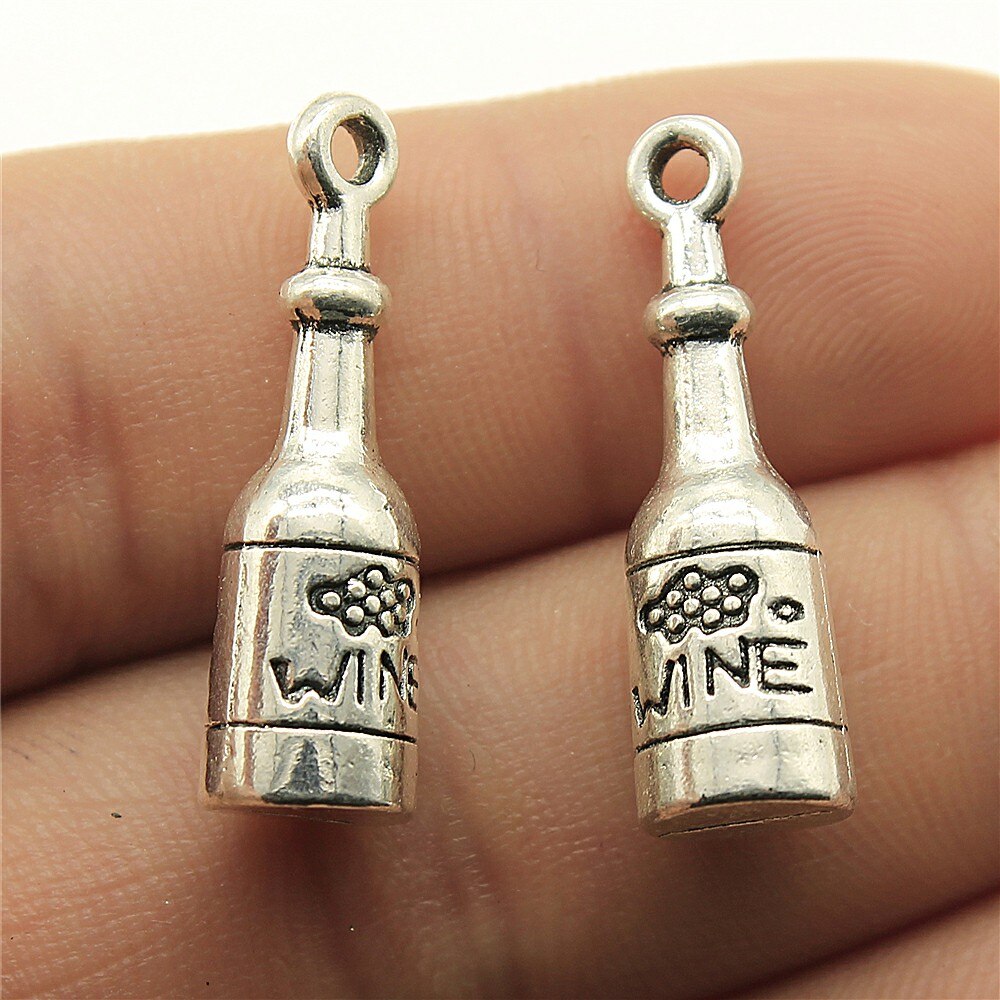 WYSIWYG 4pcs 28x8mm Pendant Wine Bottle 3D Grape Wine Bottle Charm For Jewelry Making 3D Wine Bottle Pendants