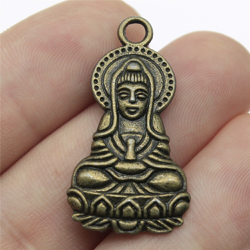 WYSIWYG 4pcs 34x18mm Double Sided Goddess Of Mercy Charms For Jewelry Making Antique Silver Plated Antique Bronze Color EF3712
