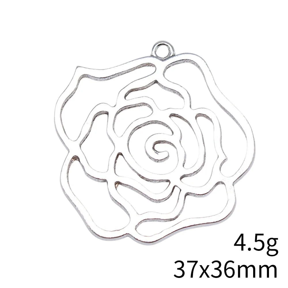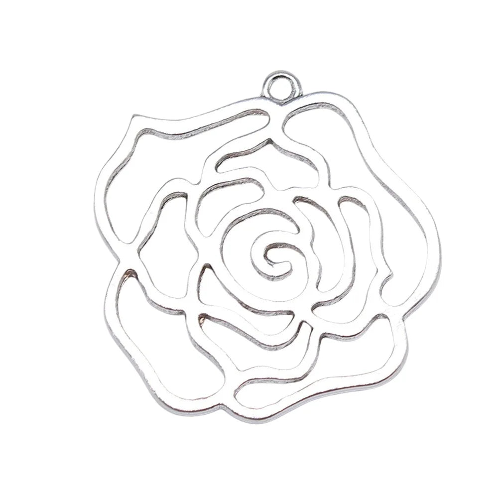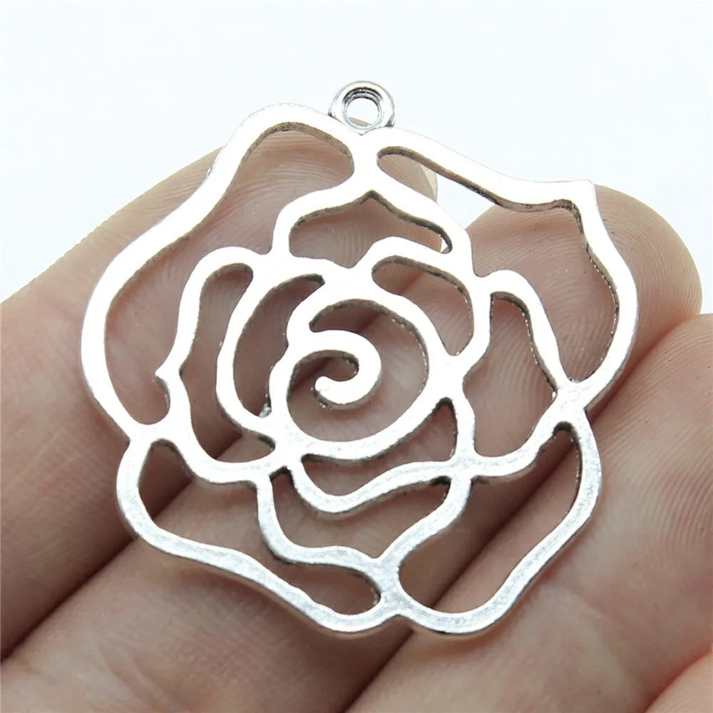 4pcs 37x36mm Antique Silver Color Hollow Rose Flowers Charms Pendant For DIY Jewelry Making Jewelry Craft Findings