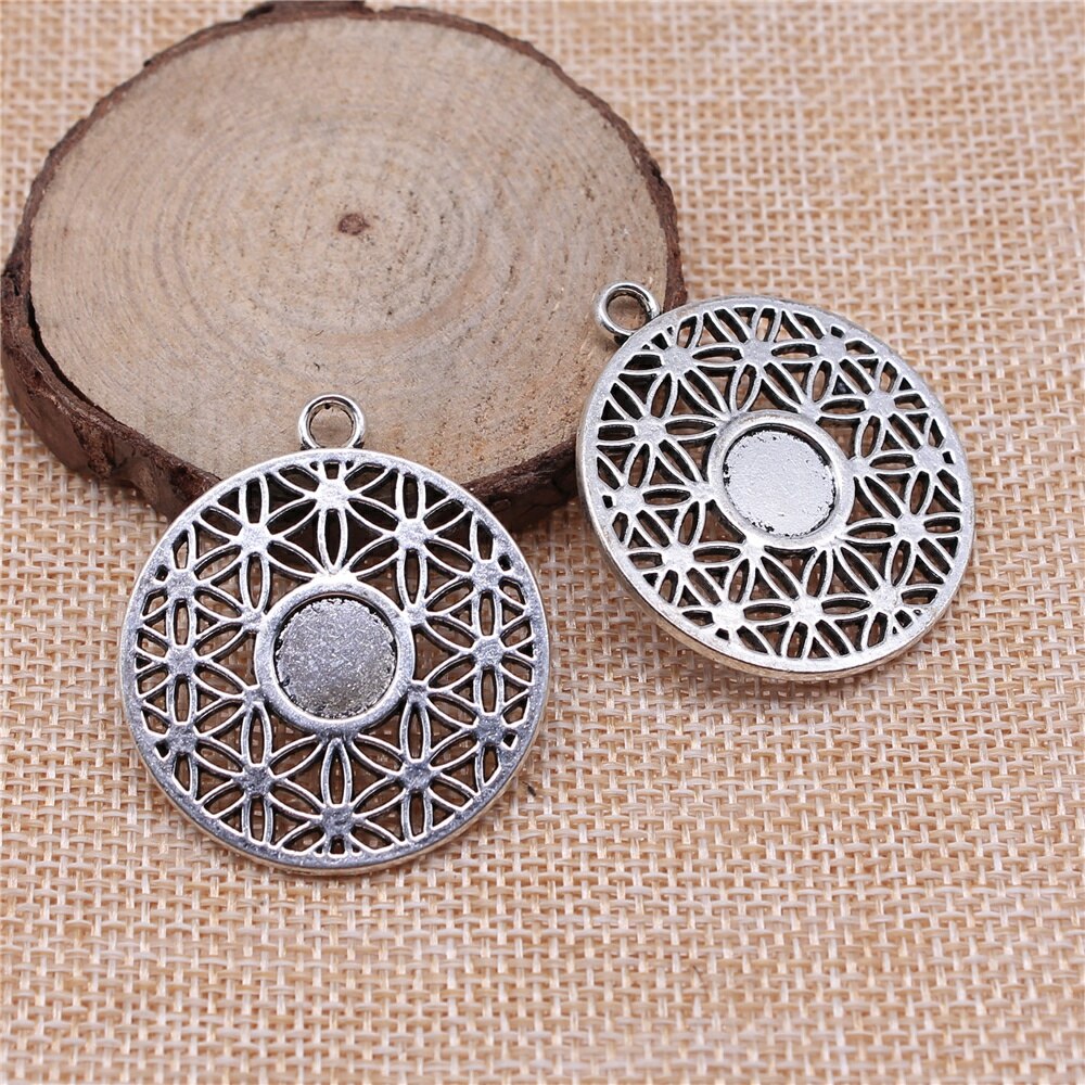 WYSIWYG 4pcs 40x35mm The Flower Of Life The Seed Of Life Charms For Jewelry Making Antique Silver Color Charms