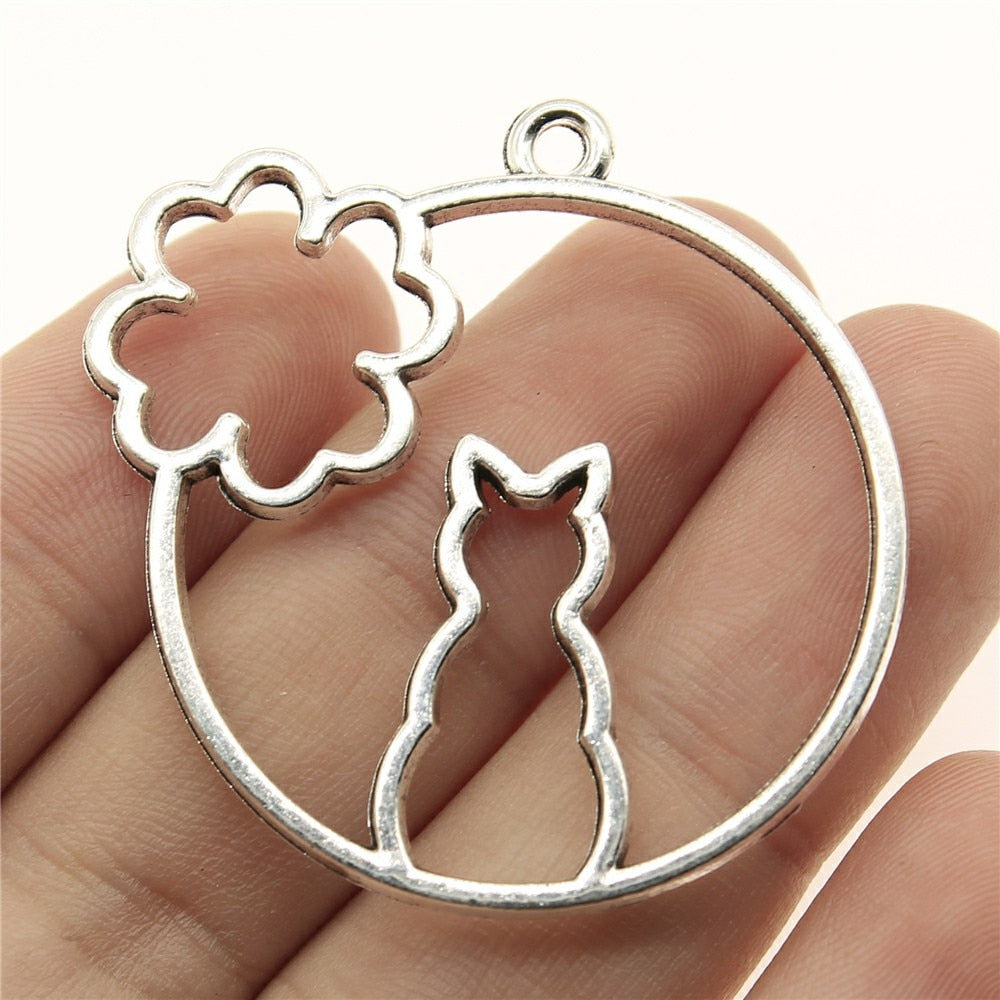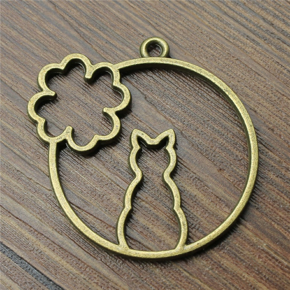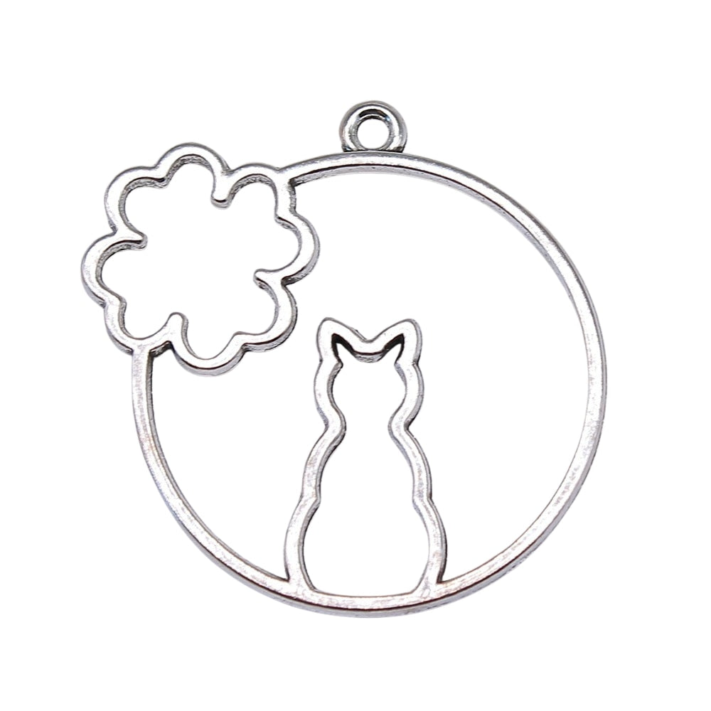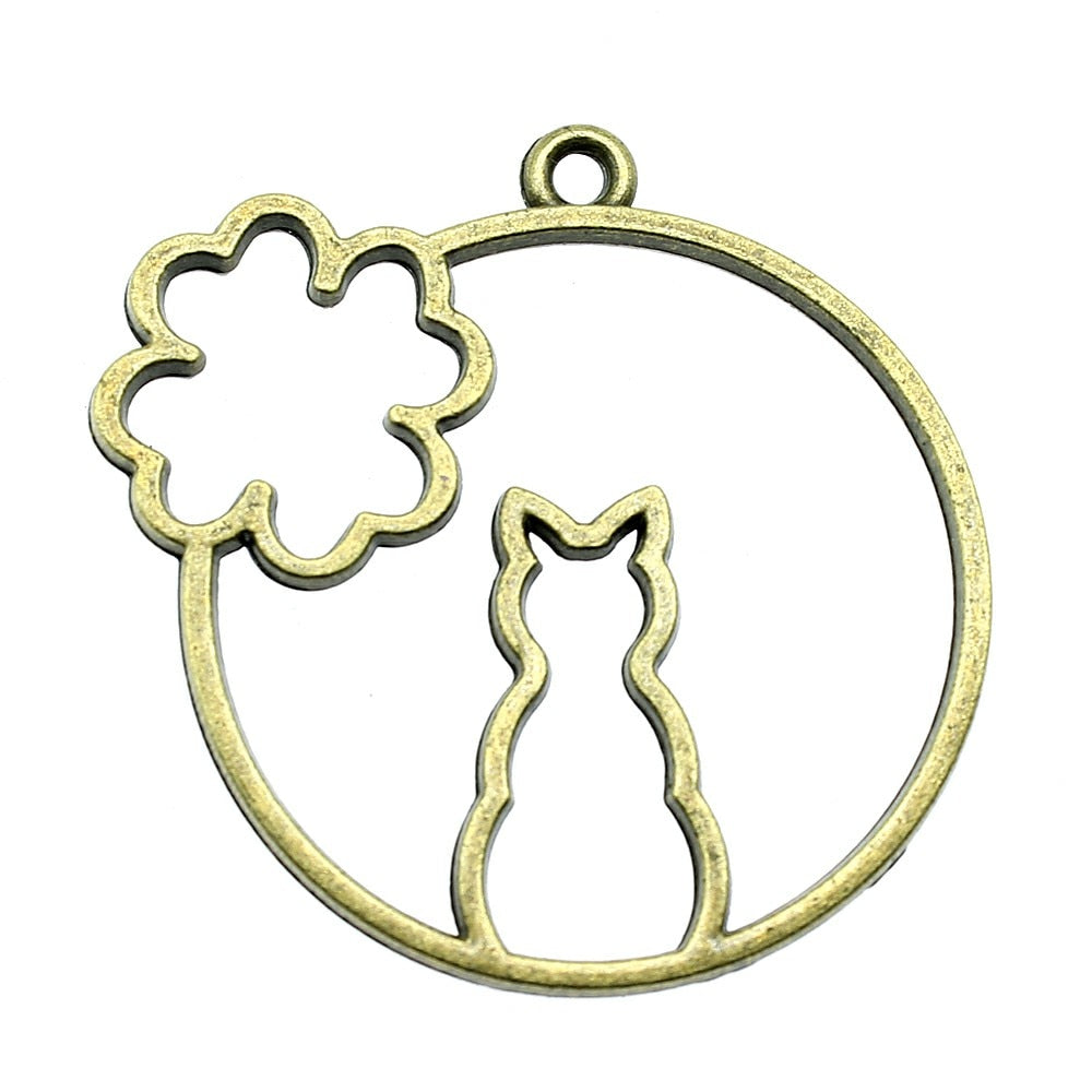 WYSIWYG 4pcs 43x41mm Cat Flower Shape Metal Frame Charm Cat Setting Uv Resin Pendant Flower Cat Shape Metal Frame Pendants