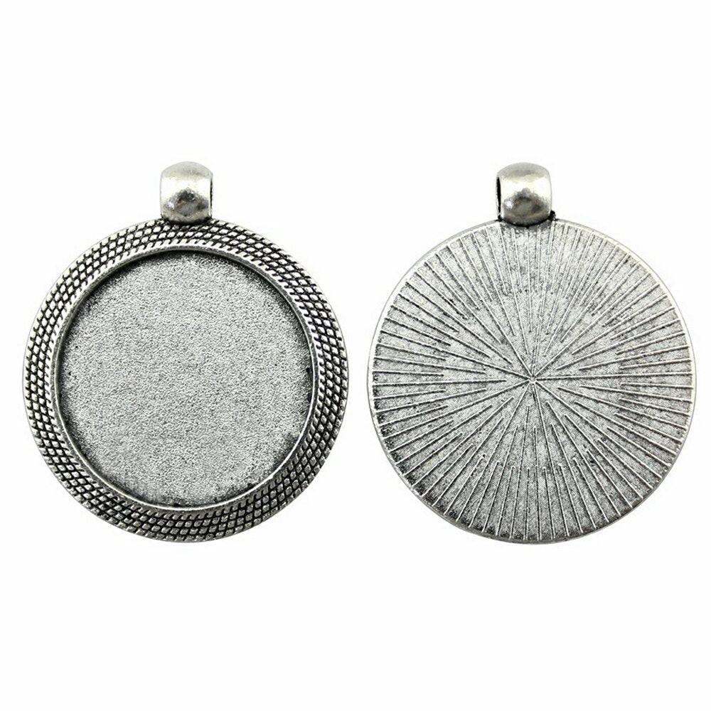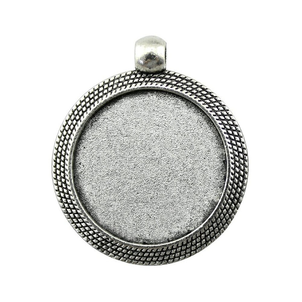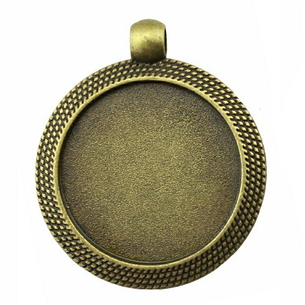 WYSIWYG 4pcs Fit 25mm Round Simple Side Perforation Style Cameo Cabochon Pendant Base Setting For Jewelry Making
