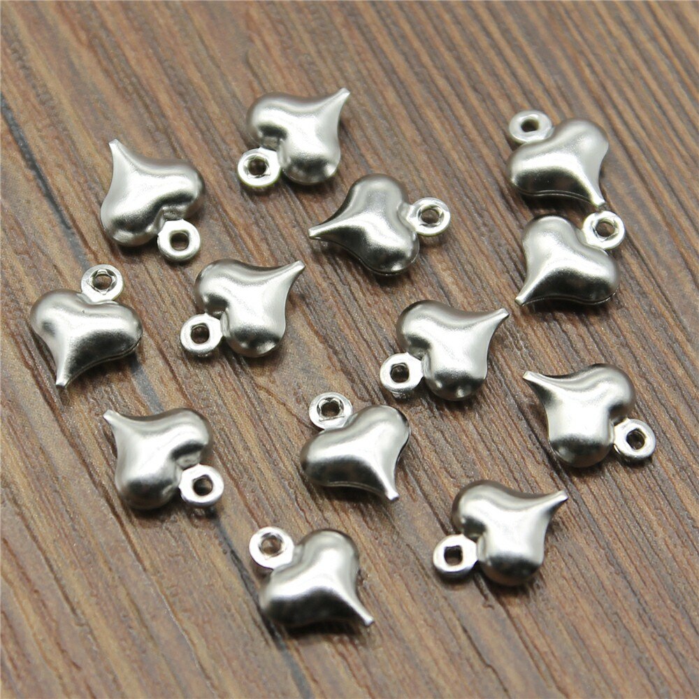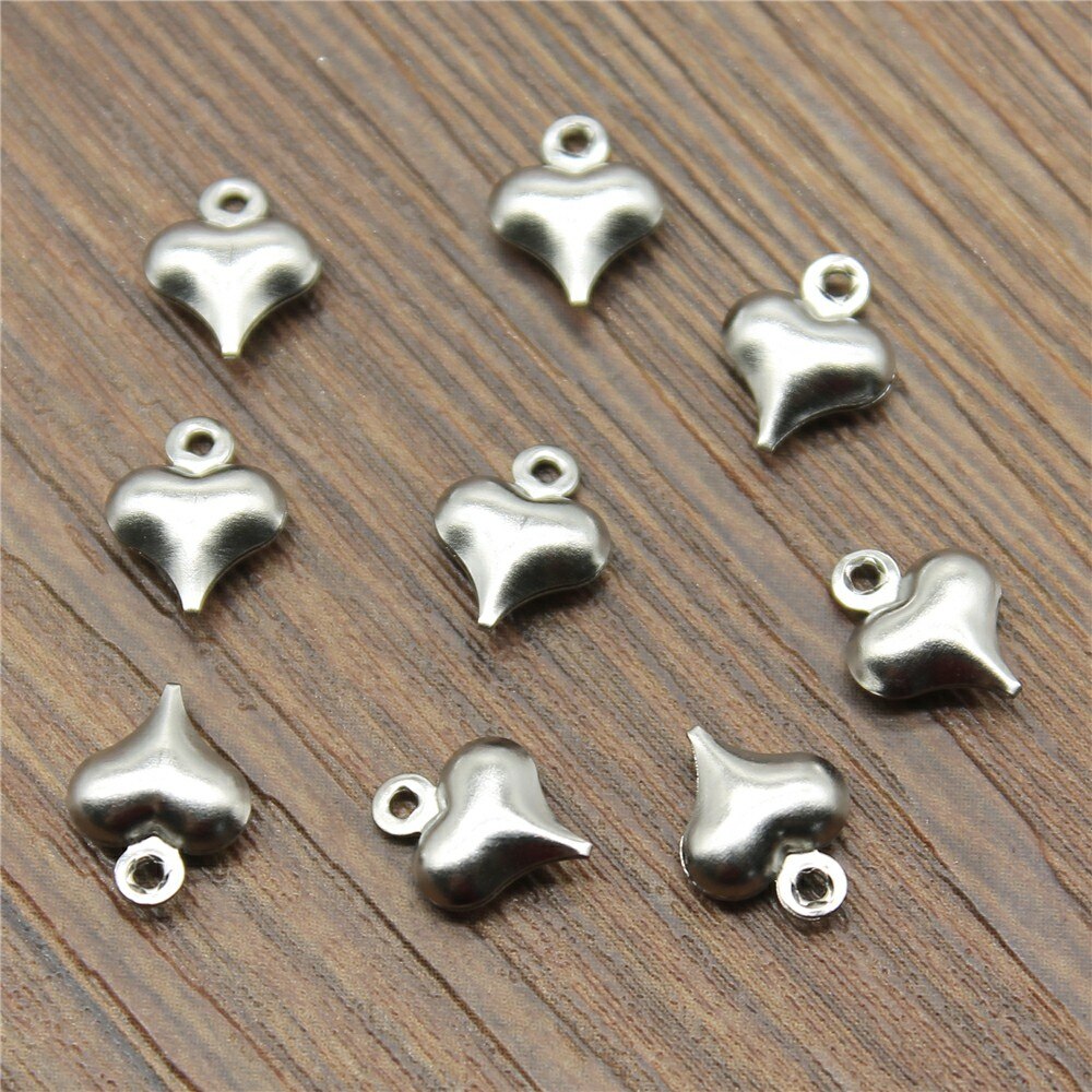 WYSIWYG 50pcs 9.5x7.5mm Stainless Steel Material Heart Charms For Bracelet Jewelry Making