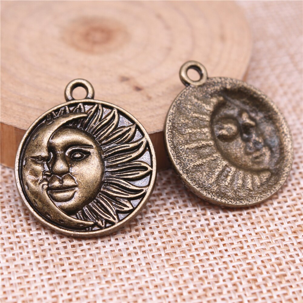 WYSIWYG 5pcs 29x25mm Sun And Moon Charms For Jewelry Making Jewelry Accessories Antique Silver Plated Antique Bronze Plated
