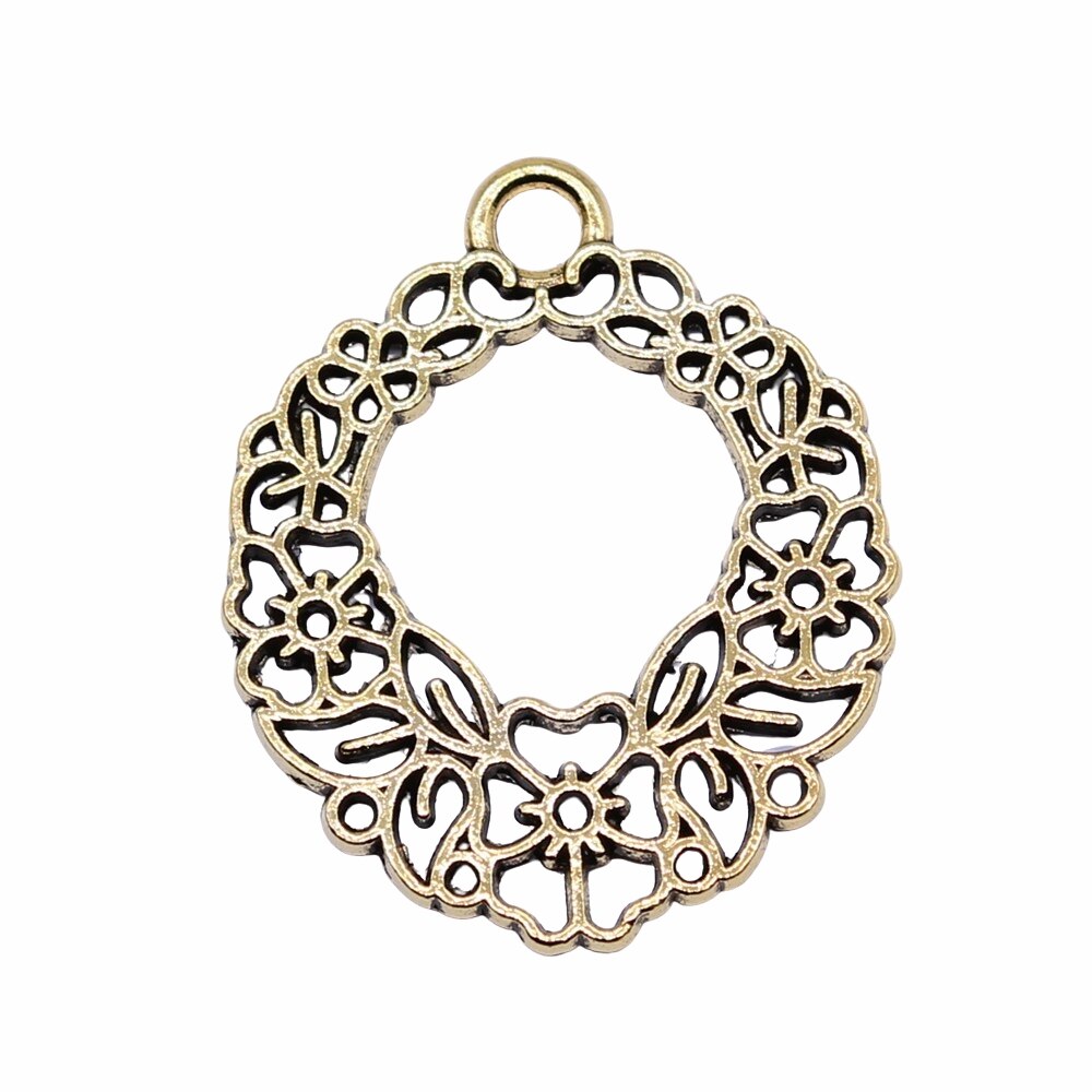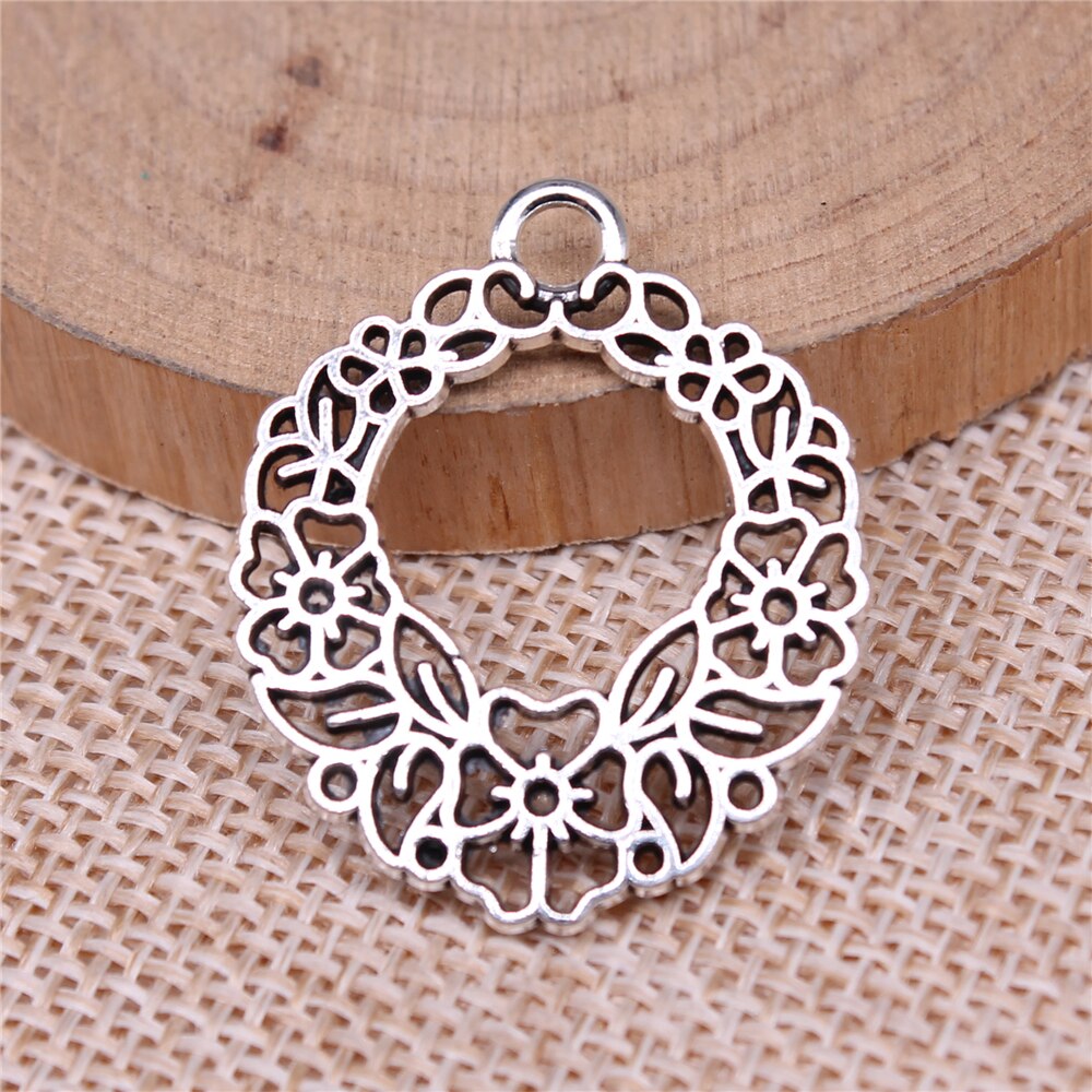 WYSIWYG 5pcs 30x25mm Hollow Flower Wreath Charms For Jewelry Making DIY Jewelry Findings