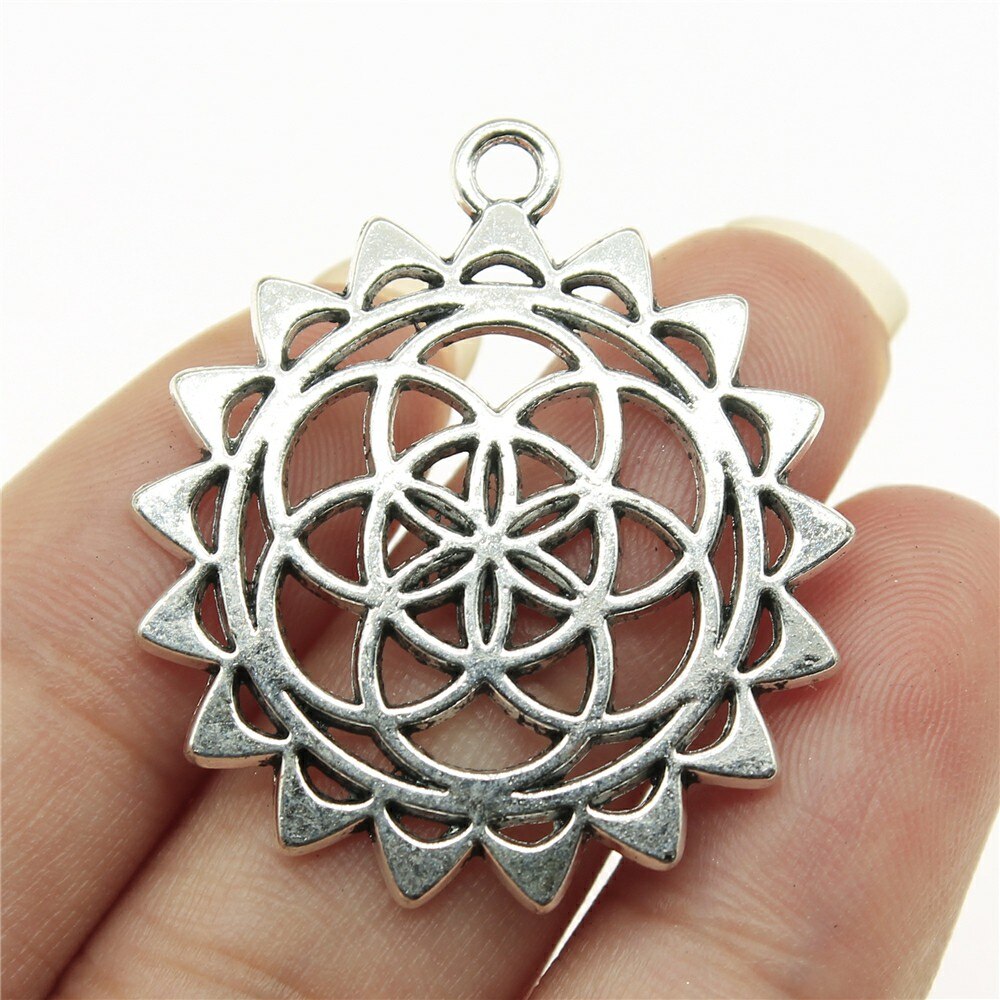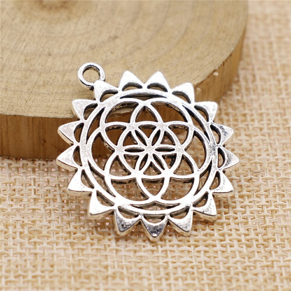 WYSIWYG 5pcs 33x30mm The Flower Of Life The Seed Of Life Charms For Jewelry Making Antique Silver Color Charms