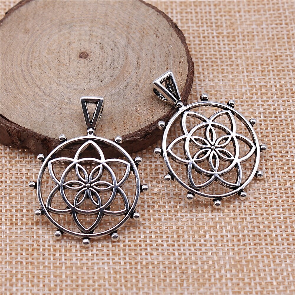 WYSIWYG 5pcs 39x30mm The Flower Of Life The Seed Of Life Charms For Jewelry Making Antique Silver Color Charms