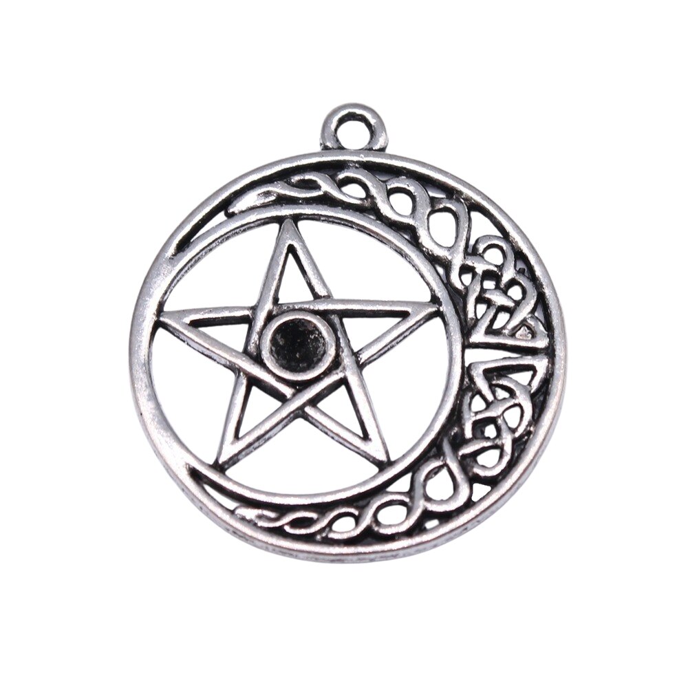 WYSIWYG 5pcs Charms 33x30mm Star Crescent Moon Charms For Jewelry Making DIY Jewelry Findings Antique Silver Color Pendant