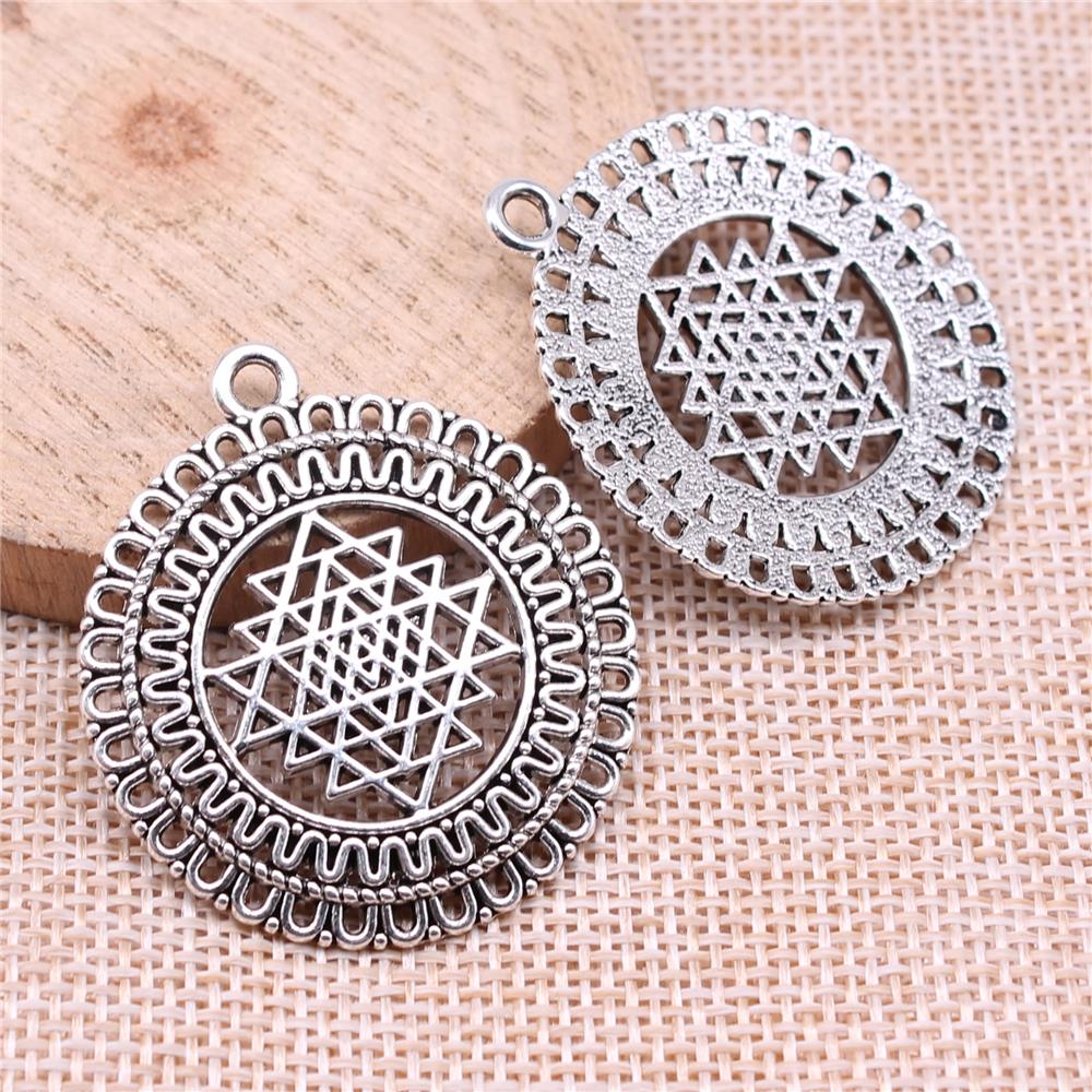 WYSIWYG 5pcs Charms 40x35mm Flower Of Life Charms For Jewelry Making DIY Jewelry Findings Antique Silver Color Alloy Pendant