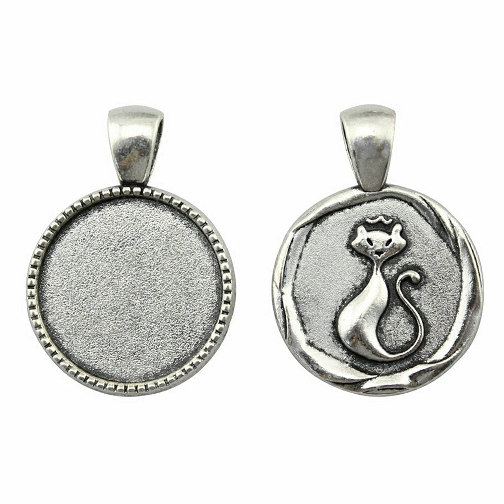 WYSIWYG 5pcs Fit 20mm Round Cat Back Style Cameo Cabochon Pendant Base Setting For Jewelry Making DIY Necklace Making